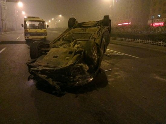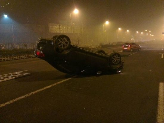 除夕夜發(fā)3起撞車事故 車輛整體倒翻一地零件(圖)