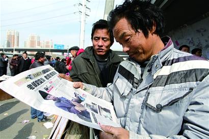 ????看到報(bào)紙上自己吃餃子、找工作的照片,回想起這幾天來(lái)青 “追夢(mèng)”的經(jīng)歷,周國(guó)錢的眼角有些濕潤(rùn)。有些打工者讓老周拿報(bào)紙回老家給家里人顯擺顯擺,也上報(bào)紙成名人了?!白约耗暮靡馑几依锶苏f(shuō)這些啊,只希望家人不要知道自己在這受的這些苦?!敝車?guó)錢說(shuō)。