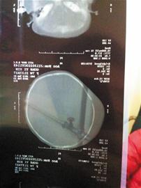 李女士告訴記者,事發(fā)后,她和丈夫打車把女兒送到了膠州當(dāng)?shù)蒯t(yī)院,醫(yī)生檢查發(fā)現(xiàn),鑫鑫頭部骨折,建議趕緊轉(zhuǎn)院。一家人又打車趕往青醫(yī)附院,把孩子送到小兒急診治療。經(jīng)過腦CT檢查,鑫鑫的腦骨碎了4塊,腦部還有大量淤血,情況十分危險(xiǎn)。