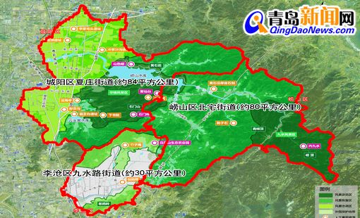 世園生態(tài)都市新區(qū)位于青島市中心城區(qū)東北部,李滄區(qū)、嶗山區(qū)和城陽(yáng)區(qū)交界處,總面積約194 平方公里,包括李滄區(qū)九水路街道、嶗山區(qū)北宅街道、城陽(yáng)區(qū)夏莊街道三個(gè)街道辦事處。該區(qū)域地處青島腹地,在嶗山山脈和中心城區(qū)的嫁接地帶,地理位置優(yōu)越。但相比沿海一線,城市建設(shè)和經(jīng)濟(jì)發(fā)展都相對(duì)滯后,城市基礎(chǔ)設(shè)施配套相對(duì)薄弱,居民生活水平和居住環(huán)境都亟需提高。