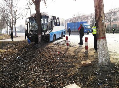 “204國(guó)道這里出車(chē)禍了,一輛大客車(chē)撞到了路邊大樹(shù)上,有救護(hù)車(chē)過(guò)來(lái),肯定是傷著人了?!弊蛱煜挛?時(shí)20分左右,熱心市民致電本報(bào)讀者熱線82860085,稱在204國(guó)道三環(huán)路附近,一輛大客車(chē)發(fā)生了意外。