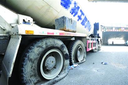 記者繞到車身后看見,攪拌罐下方的八個承重輪已經(jīng)全癟了,一輛載著氣泵的面包車正停在車后方給輪胎加氣?!耙皇俏野褮夥诺簦嚫緵]法開出來!”司機抹了一把額頭上的汗,向記者講述了昨晨的一幕。