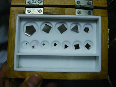 在質(zhì)量實(shí)驗(yàn)室里,記者見(jiàn)到了好幾盒標(biāo)準(zhǔn)砝碼,其中最小的砝碼只有1毫克,只有黃豆粒大小。陳效泉說(shuō),其他的砝碼還有2毫克、5毫克、10毫克、20毫克、1克的,一直到500克、20公斤,再大的砝碼有上噸重的。