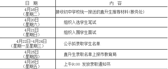 4月16日(星期二)上午8:00~下午4:30,接收初中學校統(tǒng)一報送的直升生推薦材料: