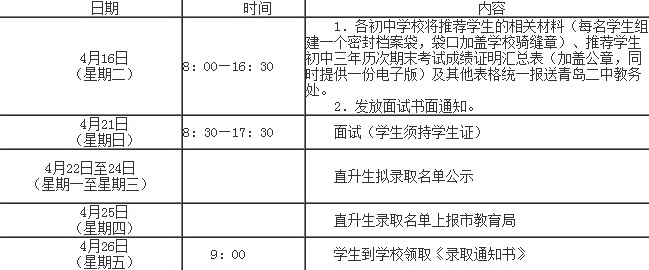 4月16日(星期二)上午8:00~下午4:30,接收初中學(xué)校統(tǒng)一報送的直升生推薦材料: