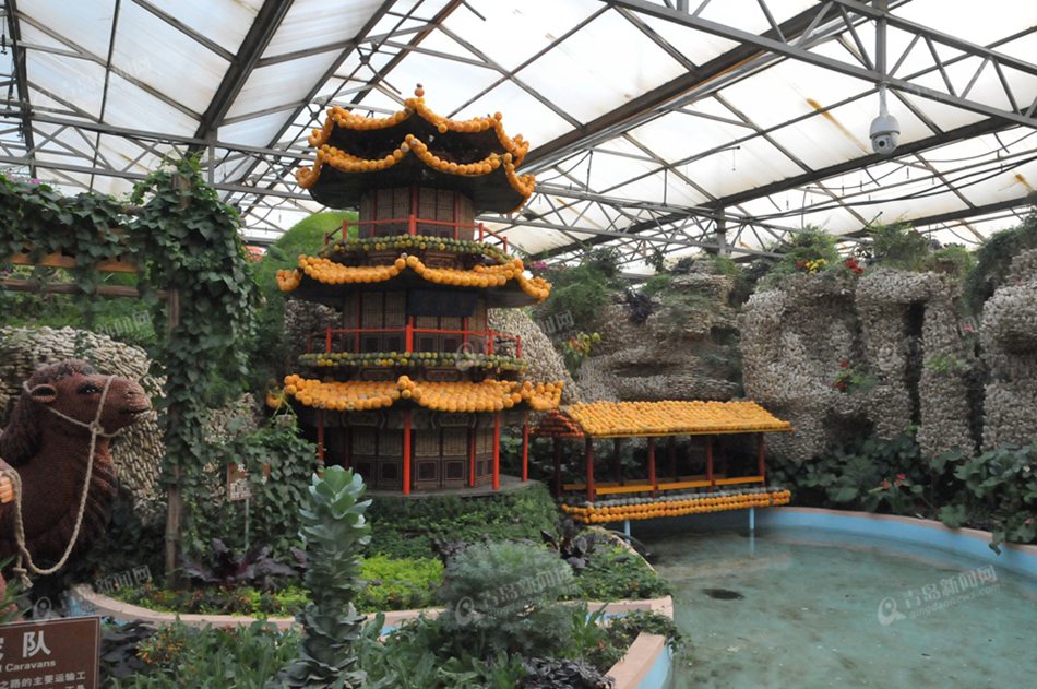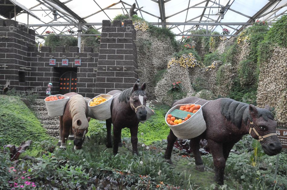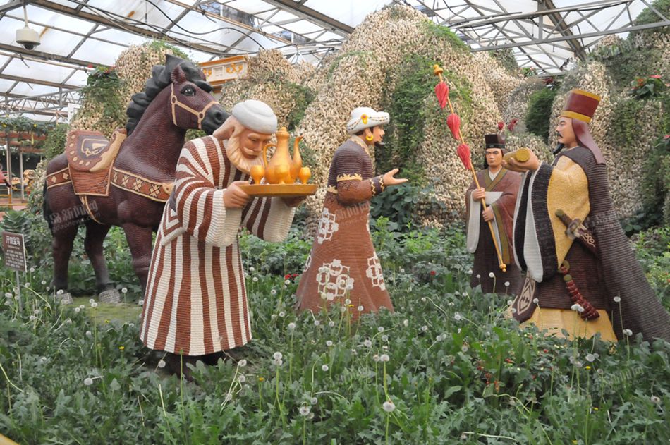 ????中心景點(diǎn)為“綠播絲綢路”,該景點(diǎn)以世界文化遺產(chǎn)“絲綢之路”為主題,以傳統(tǒng)文化和現(xiàn)代藝術(shù)為載體,以各類菜果、糧種為符號(hào)制作而成。通過(guò)鐘樓鼓樓、馬踏飛燕、火焰山、樓蘭古國(guó)、特洛伊木馬、許愿池、荷蘭風(fēng)情、情迷地中海等33處組合景觀,將“一帶一路”濃縮于廳堂之內(nèi),盡顯古絲綢之路人文內(nèi)涵,描繪出一幅橫跨歐亞大陸人文名勝的巨幅畫卷,造型氣勢(shì)恢宏、大氣磅礴、震撼人心,具有強(qiáng)烈的時(shí)代感和現(xiàn)實(shí)意義。