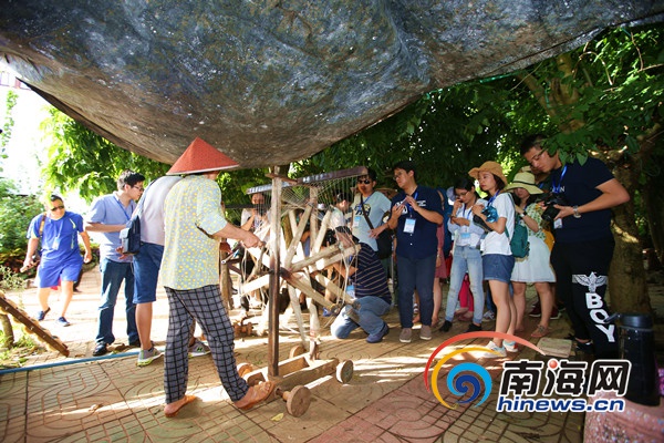 網(wǎng)媒記者參觀編織漁網(wǎng)。南海網(wǎng)記者吳勇輝攝
