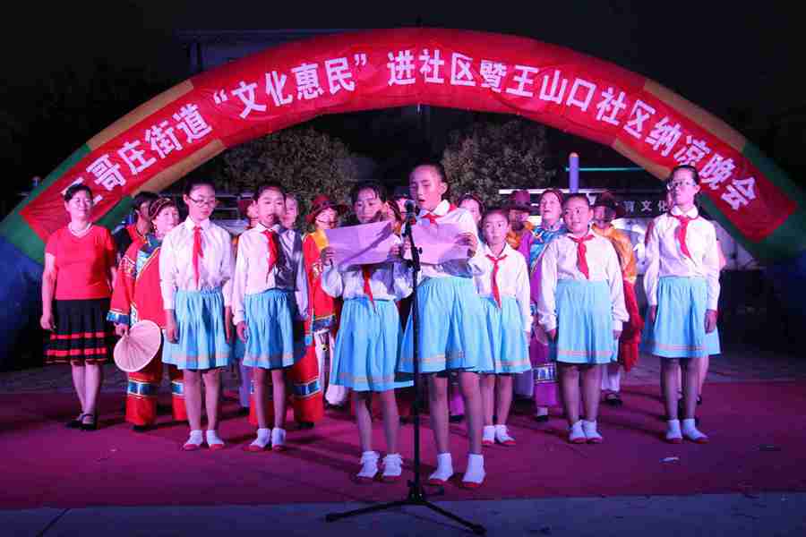 ????8月8日晚,第二場“文化惠民”晚會在王山口社區(qū)正式上演,晚會現(xiàn)場人山人海,僅王山口社區(qū)就有600余名群眾歡聚一堂,居民們自帶小馬扎,整齊的坐在舞臺周圍。晚會中,老中青演員們齊上陣,從廣場舞到歌曲串唱,從小品相聲到戲曲魔術(shù),使觀眾目不暇接,三個多小時的晚會,18個節(jié)目精彩紛呈,居民們大呼過癮,給悶熱的夏季夜晚帶來了歡聲笑語。