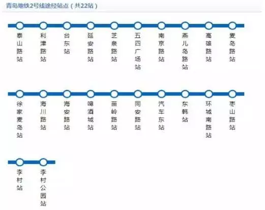 一期工程全長25.2 公里,全線共設車站22座 ,起自泰山路站,止于李村公園站,途經(jīng)市北區(qū)、市南區(qū)、嶗山區(qū)、李滄區(qū)四個區(qū)。