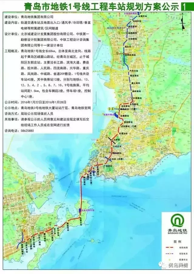 青島地鐵1號線全長約60公里,穿越黃島區(qū)、市南區(qū)、市北區(qū)、李滄區(qū)、城陽區(qū),起于黃島區(qū)峨眉山路站,經(jīng)青島主城區(qū),止于城陽區(qū)東郭莊站,是連接黃島開發(fā)區(qū)和青島主城區(qū)的重要線路。