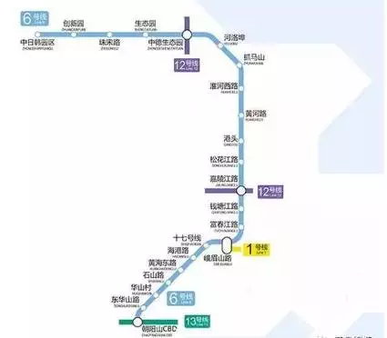 朝陽山CBD——換乘13號線到:泰山路、黃海東路