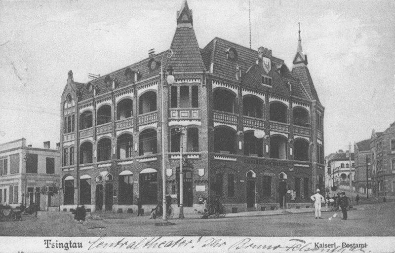 1901年5月,青島德意志帝國(guó)郵局在亨利親王大街(今廣西路)、阿爾柏爾特大街(今安徽路)、梯爾皮茲大街(今莒縣路)交叉路口一側(cè)所建的郵電大樓投入使用,開辦郵政、電報(bào)、電話業(yè)務(wù)。