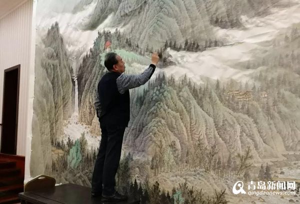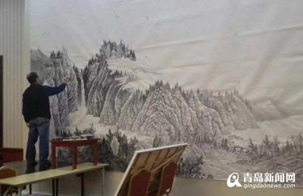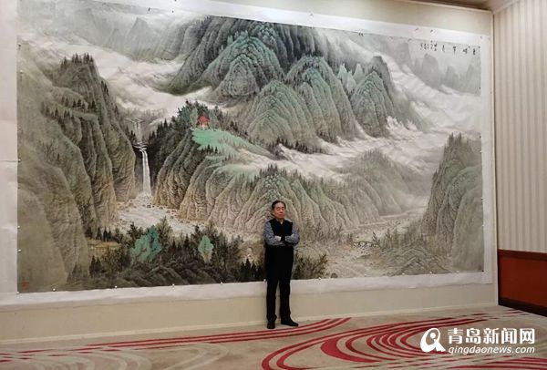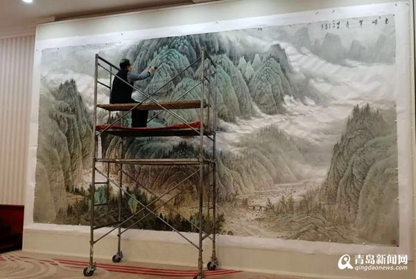 在青島國際會(huì)議中心會(huì)議貴賓室,巨幅山水《東嶗翠秀》吸引了中外記者的注意,這幅作品正是由青島畫院名譽(yù)院長曾先國創(chuàng)作的。在接到創(chuàng)作任務(wù)通知后,曾先國便開始思索,怎樣才能創(chuàng)作出既體現(xiàn)中國氣派、山東特色又能展現(xiàn)青島風(fēng)采的中國畫作品呢?最終,曾先國決定創(chuàng)作一幅以嶗山為題材的山水畫作品,并選取嶗山最具代表性的景點(diǎn)北九水作為創(chuàng)作范本。曾先國幾次深入實(shí)地寫生,探尋創(chuàng)作靈感,使作品能夠更全面的展示作品的精神內(nèi)涵及嶗山特有的壯觀氣勢。