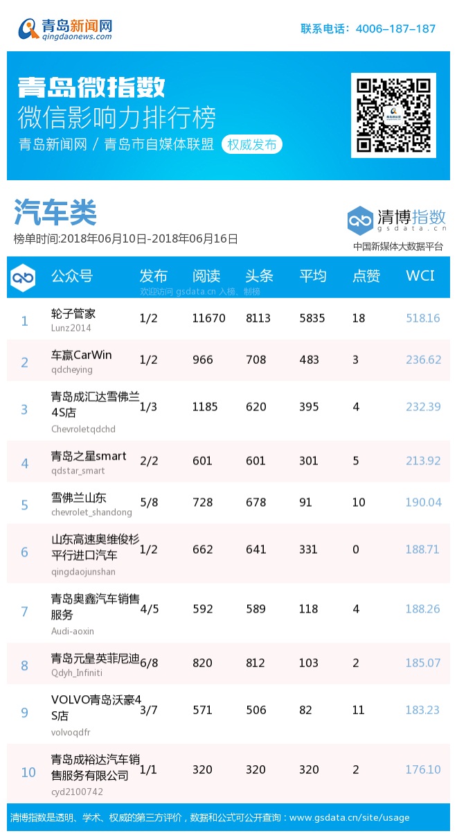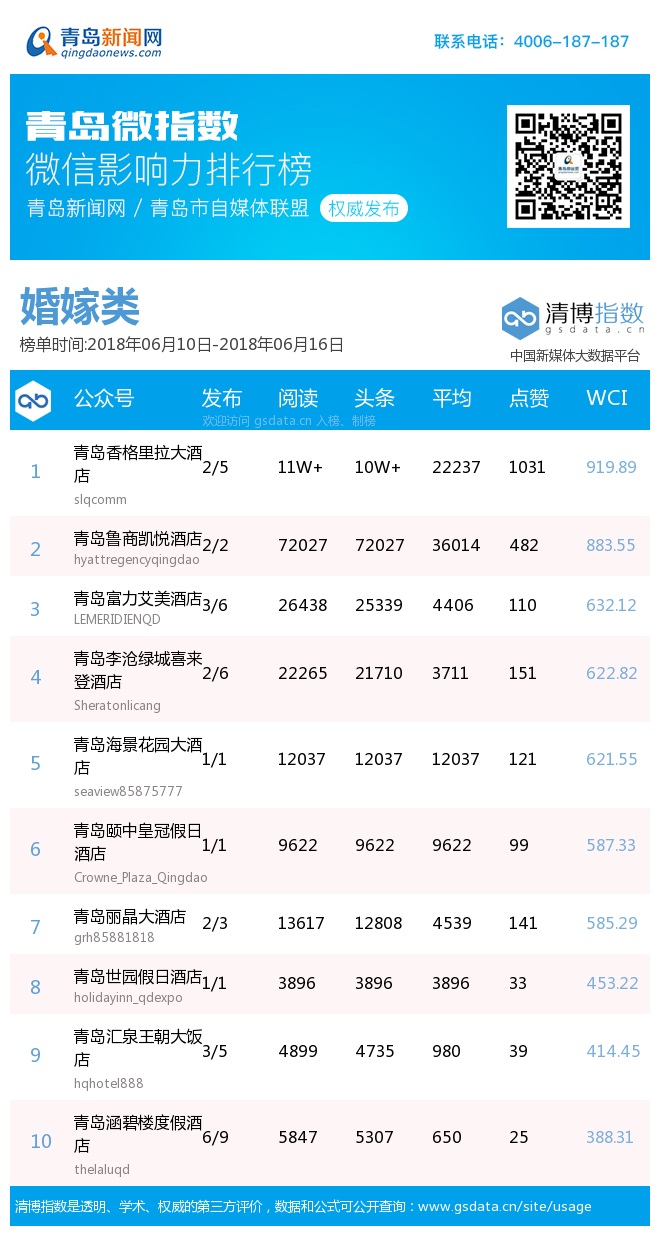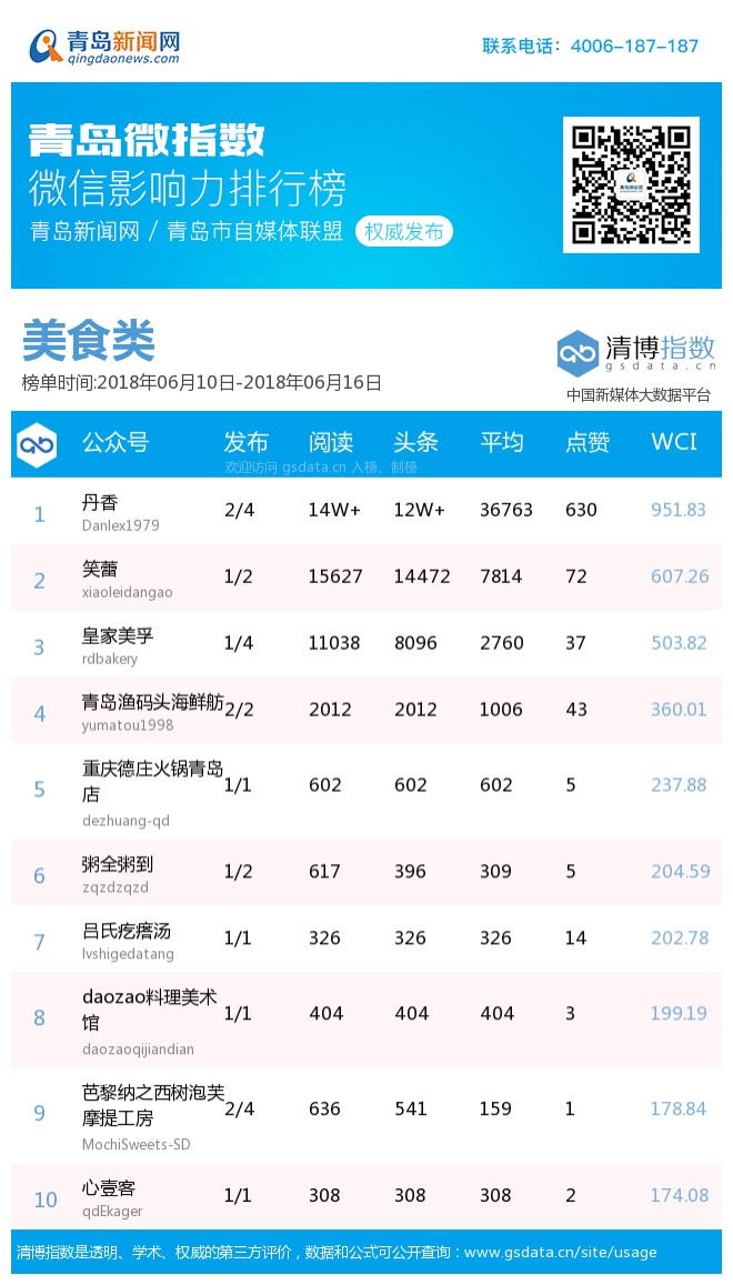 3、本次榜單收錄了青島14個行業(yè)微信公眾號,如您的賬號暫未收錄,可聯系4006-187-187。