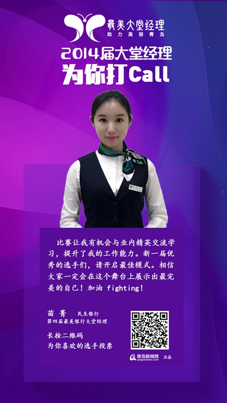 第四屆最美銀行大堂經(jīng)理:中國民生銀行苗菁