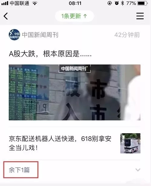 每個(gè)公眾號(hào)最多只顯示兩條推送文章,剩余幾篇內(nèi)容被折疊起來(lái),只有點(diǎn)擊“余下幾篇”才能打開(kāi)。