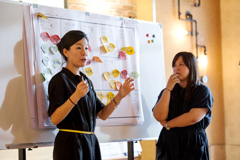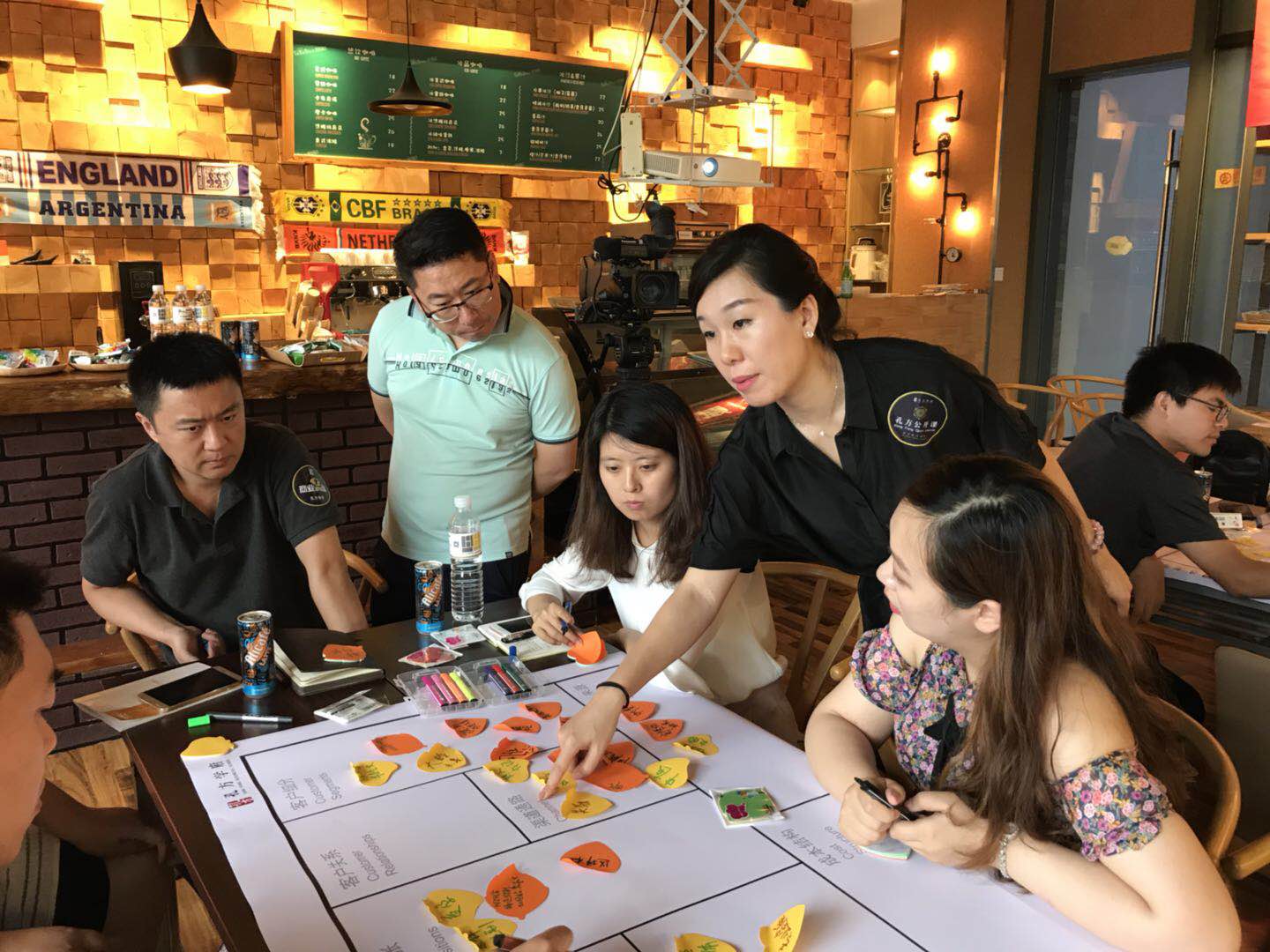 商業(yè)模式畫(huà)布圖由主要合作對(duì)象、價(jià)值主張、關(guān)鍵活動(dòng)、關(guān)鍵資源、客戶關(guān)系、客戶層、渠道等9個(gè)方格組成,每一個(gè)方格都代表著成千上萬(wàn)種可能性和替代方案,學(xué)員們要做的就是找到最佳的那一個(gè)。在小組討論環(huán)節(jié),各組用便利貼將小組討論出來(lái)的商業(yè)模式要素貼到畫(huà)布的相應(yīng)位置,以此來(lái)理清自己的商業(yè)模式。