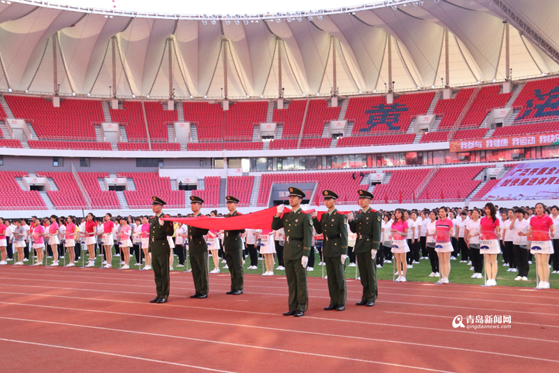 在運(yùn)動(dòng)員進(jìn)行曲中,49支隊(duì)伍的1850名裁判員、運(yùn)動(dòng)員在國旗隊(duì)的前導(dǎo)下,邁著整齊的步伐入場,展示出了嶗山區(qū)各行各業(yè)職工奮發(fā)向上、團(tuán)結(jié)進(jìn)取的精神風(fēng)貌,以及干事創(chuàng)業(yè)的熱情和創(chuàng)造活力。