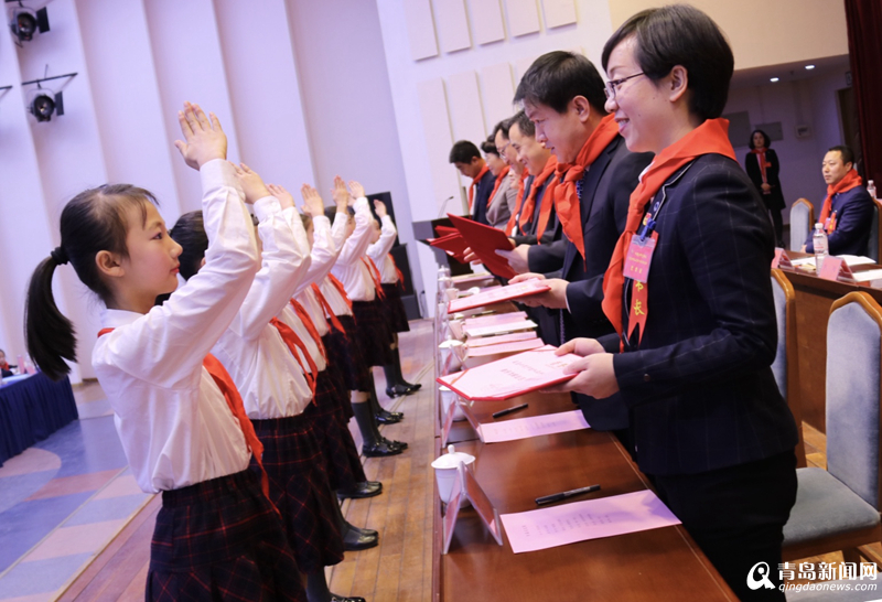 區(qū)總工會(huì)常務(wù)副主席王鵬海代表群團(tuán)組織向大會(huì)致祝詞;團(tuán)區(qū)委副書記高潔代表中國(guó)少年先鋒隊(duì)青島市嶗山區(qū)第九屆工作委員會(huì)向大會(huì)作了題為《高舉隊(duì)旗跟黨走肩負(fù)使命共奮進(jìn)》的工作報(bào)告;團(tuán)市委副書記、市少工委主任張宇代表市少工委向大會(huì)賀詞。
