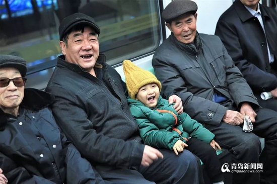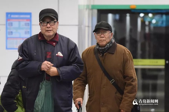 開通首日的乘客中不乏年事已高的老年人身影,還有從青島市區(qū)坐公交,專門來(lái)感受13號(hào)線的耄耋老人,80歲的邵吉堂(右)就是其中之一。