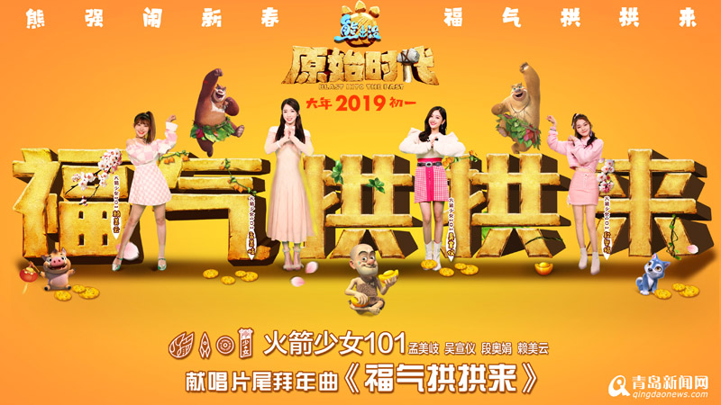 青島新聞網(wǎng)1月15日訊(記者張力偉)定檔2月5日大年初一上映的《熊出沒(méi)》第六部大電影《熊出沒(méi)·原始時(shí)代》,今日曝光由火箭少女101演唱的新年第一拜年神曲《福氣拱拱來(lái)》,同時(shí)發(fā)布歌曲音頻及MV。組合成員孟美岐、吳宣儀、段奧娟、賴美云分別為快樂(lè)、福氣、健康、財(cái)運(yùn)“代言”,向觀眾拜年。《熊出沒(méi)·原始時(shí)代》將于大年初一2D、3D同步上映,火箭少女101將攜手全新《熊出沒(méi)·原始時(shí)代》拜年片尾曲,與觀眾一同迎接2019年春節(jié)的到來(lái)。