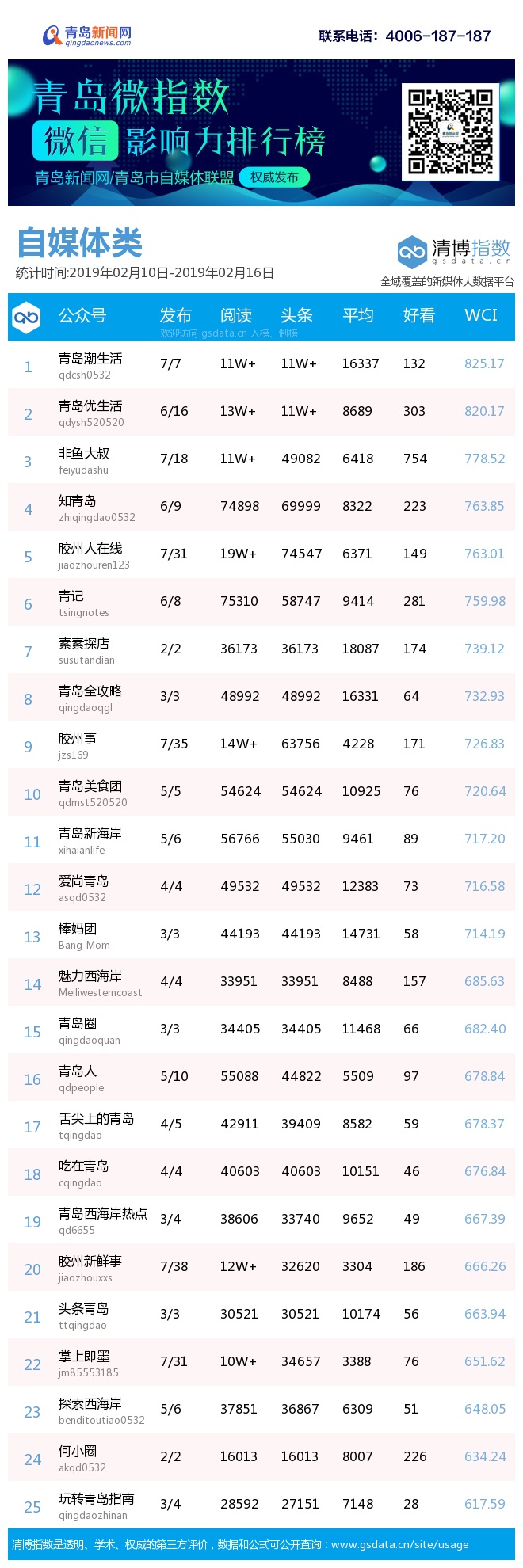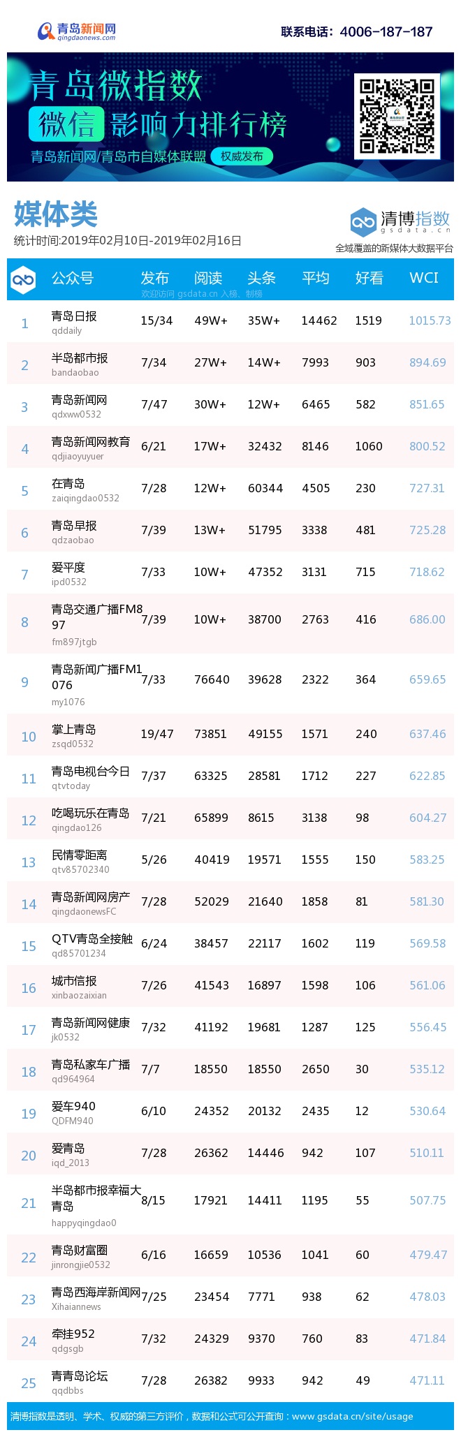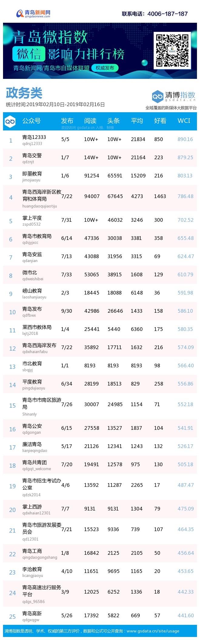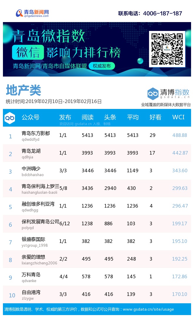 3、本次榜單收錄了青島14個行業(yè)微信公眾號,如您的賬號暫未收錄,可聯系4006-187-187。