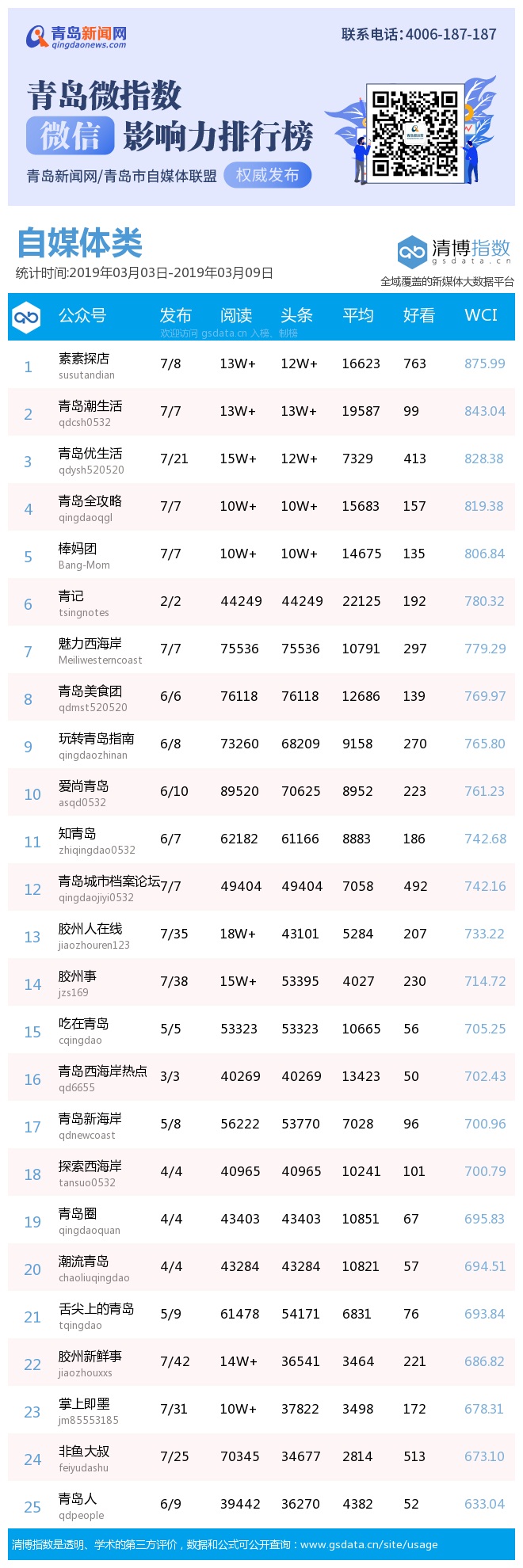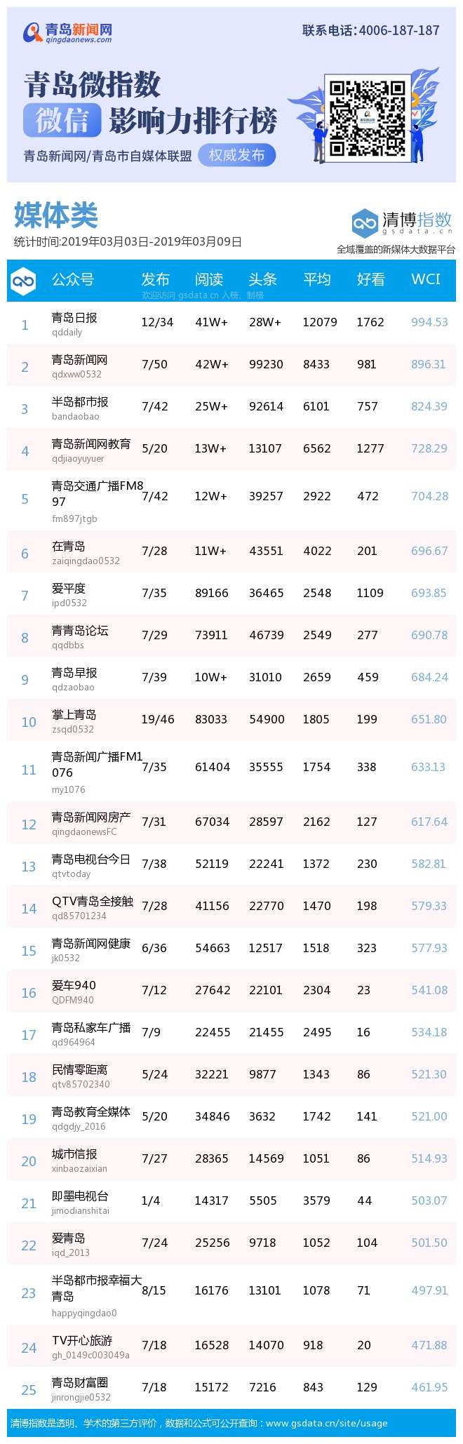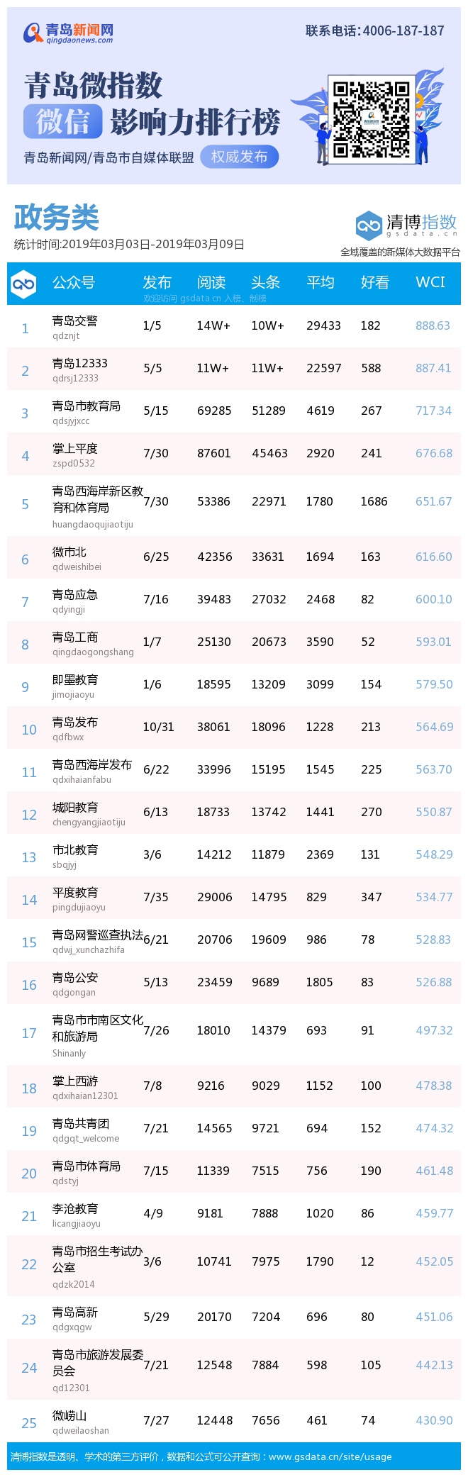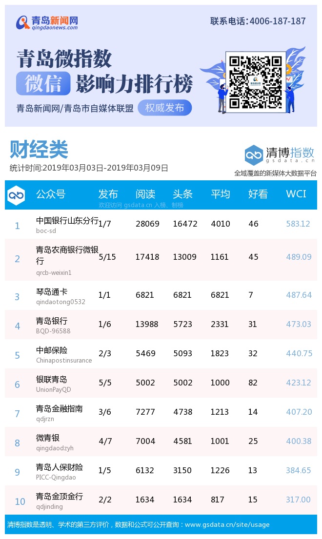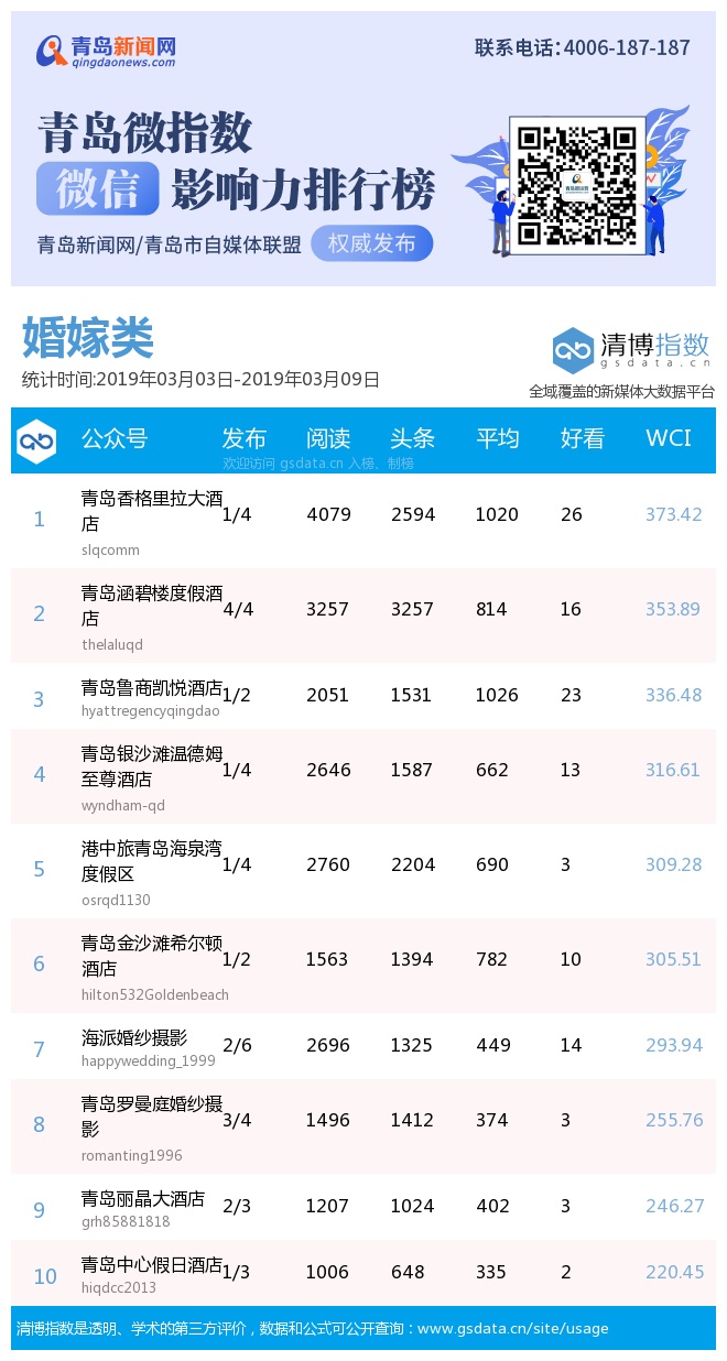 3、本次榜單收錄了青島14個行業(yè)微信公眾號,如您的賬號暫未收錄,可聯(lián)系4006-187-187。