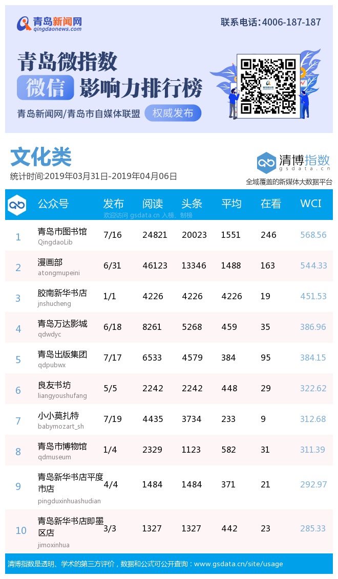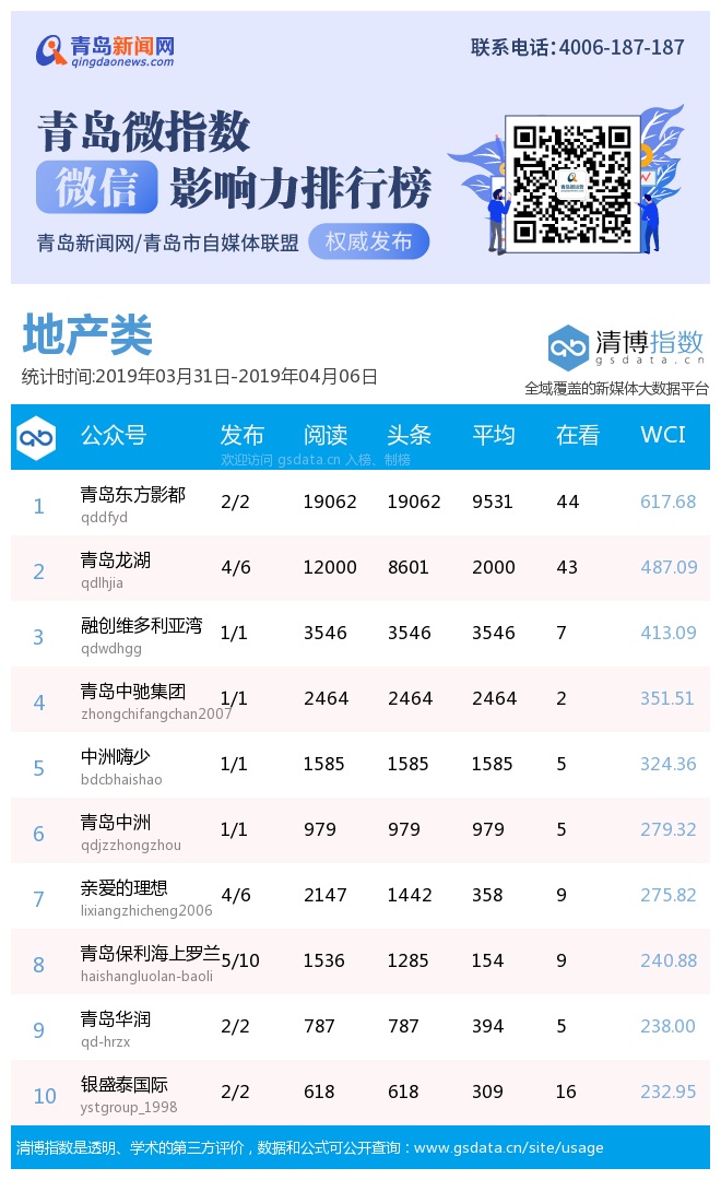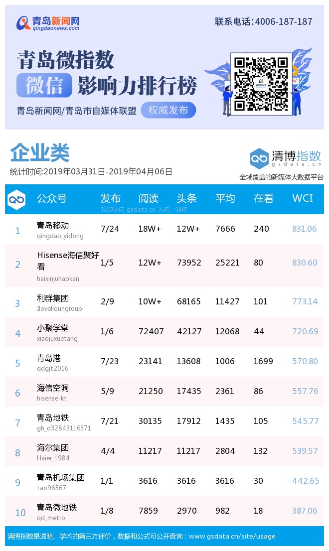 3、本次榜單收錄了青島14個(gè)行業(yè)微信公眾號(hào),如您的賬號(hào)暫未收錄,可聯(lián)系4006-187-187。