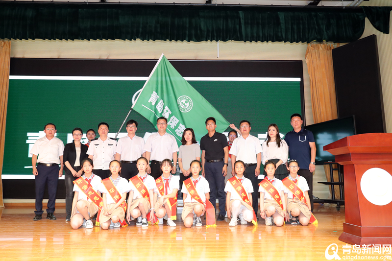 之后,舉行了“青島環(huán)保志愿者”大隊授旗儀式。市環(huán)境保護(hù)宣傳教育中心、區(qū)人才教體局、宣推辦、生態(tài)環(huán)境分局、河套街道、匯海小學(xué)、紅島中心小學(xué)、青島出口加工區(qū)實驗小學(xué)教師代表,為高新區(qū)匯海小學(xué)“青島環(huán)保志愿者”大隊的學(xué)生代表披掛綬帶,市環(huán)境保護(hù)宣傳教育中心副主任李榮為“環(huán)保志愿者大隊”授旗并集體合影留念。