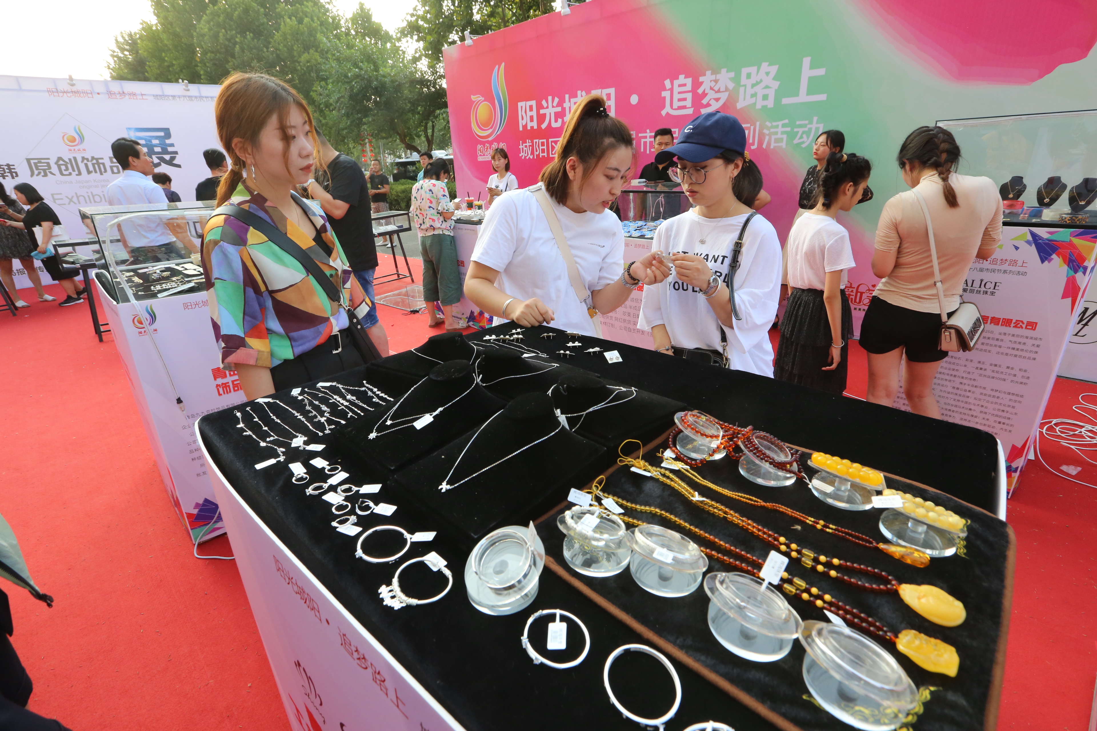 晚6時(shí),城陽魯邦國(guó)際風(fēng)情街就熱鬧起來,一場(chǎng)時(shí)尚服飾盛宴將在這里上演。此次活動(dòng)分為原創(chuàng)飾品展和國(guó)際時(shí)尚服飾秀兩部分。耳環(huán)、胸針、項(xiàng)鏈、頭飾……飾品展區(qū)前,上千款飾品吸引了眾多俊男靚女的目光。記者了解到,原創(chuàng)飾品展共設(shè)36個(gè)展位,從原材料上分,有珠寶、鉆石、黃金、合金、樹脂、亞克力等,都是中日韓最流行的時(shí)尚款式。