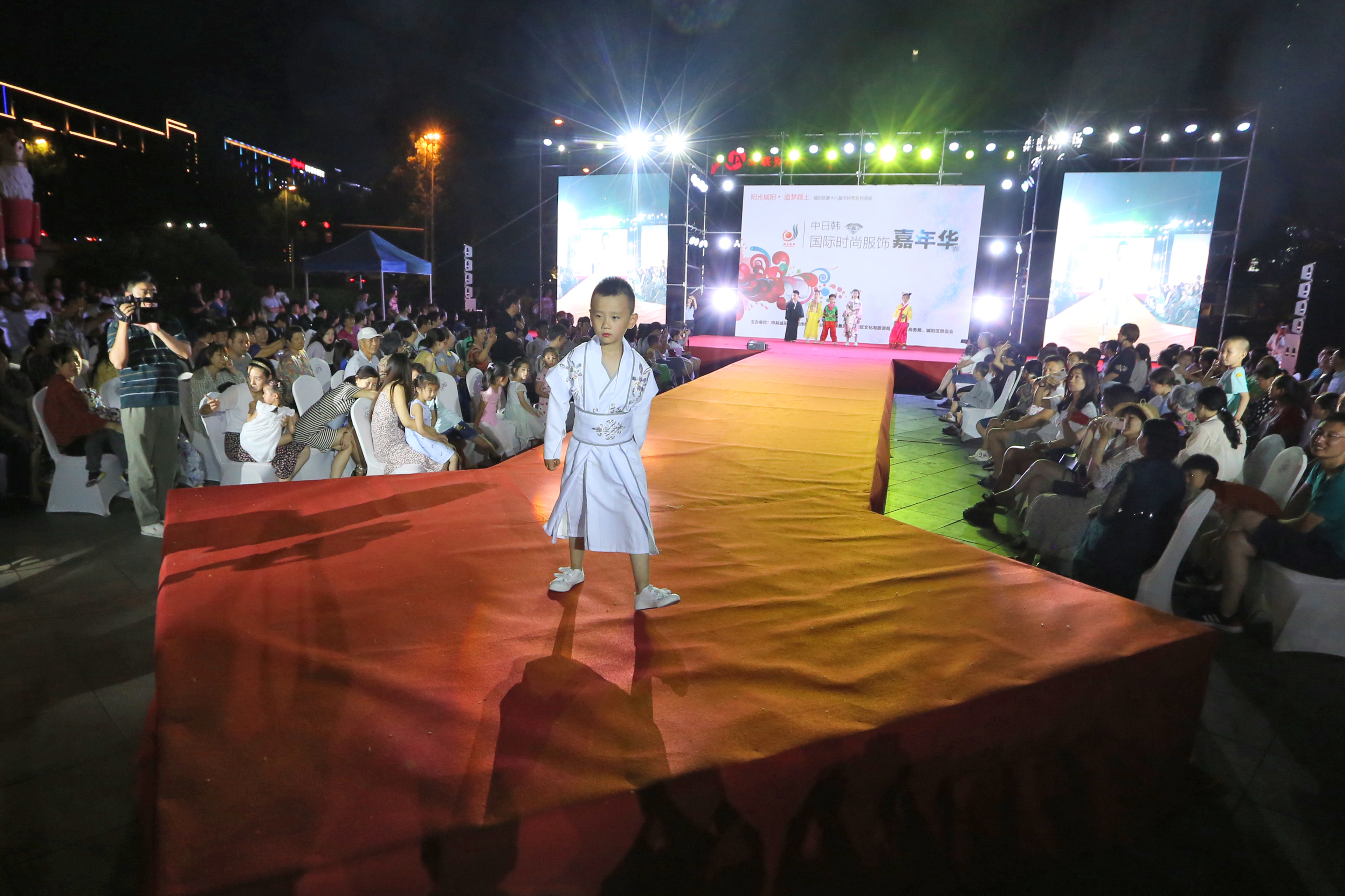 伴隨服飾嘉年華走秀環(huán)節(jié)啟動(dòng),在《茉莉花》的背景音樂下,身著中日韓傳統(tǒng)民族服飾的童模登場(chǎng)。服飾秀由“中外交融”“青春綻放”“時(shí)尚匯聚”三個(gè)篇章組成。其中,中外交融篇章以中日韓三國(guó)民族特色為主,展現(xiàn)新時(shí)代國(guó)際交流與民族融合的服飾時(shí)尚趨勢(shì);青春綻放篇章以年輕人喜愛的韓流、國(guó)潮風(fēng)尚為主,展現(xiàn)反映青年一代時(shí)尚元素的朋克風(fēng)、嘻哈風(fēng)等;時(shí)尚匯聚篇章以高端時(shí)尚服飾為主,展現(xiàn)時(shí)尚匯聚的主流潮流風(fēng)尚。在一個(gè)小時(shí)的時(shí)間內(nèi),數(shù)十名模特身著各色時(shí)裝輪番上陣,為市民帶來一場(chǎng)視覺盛宴。