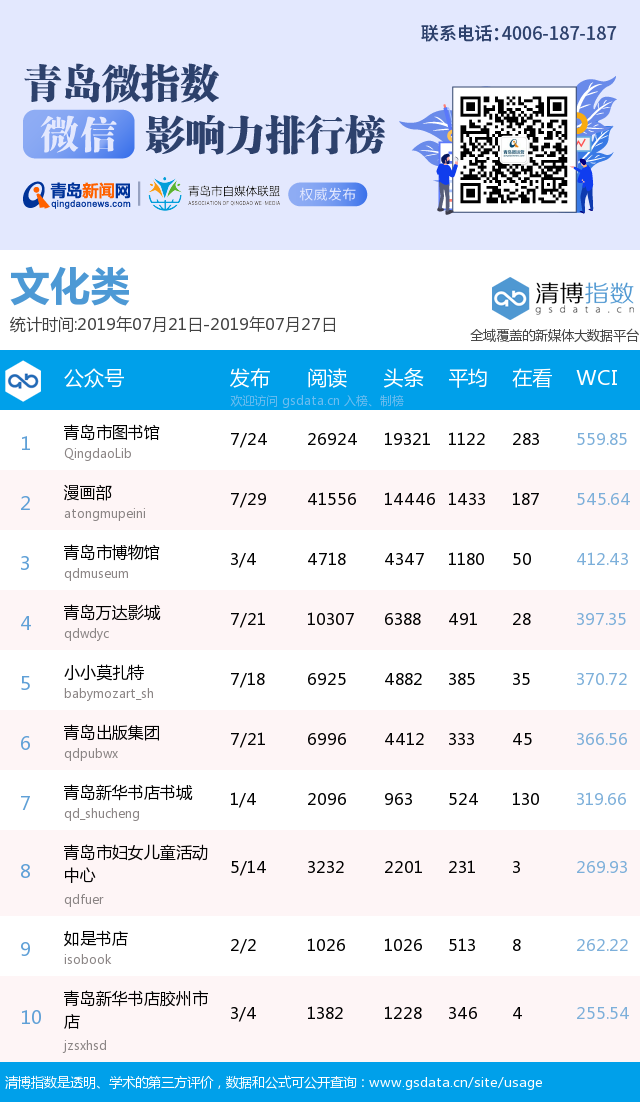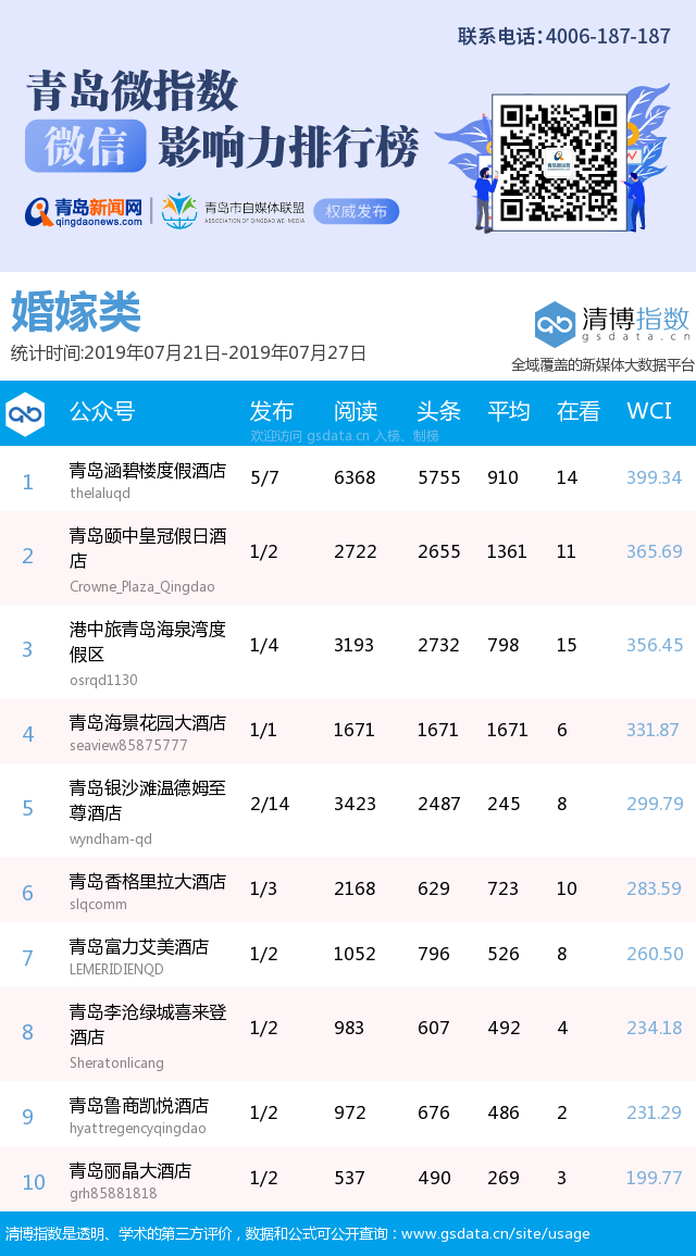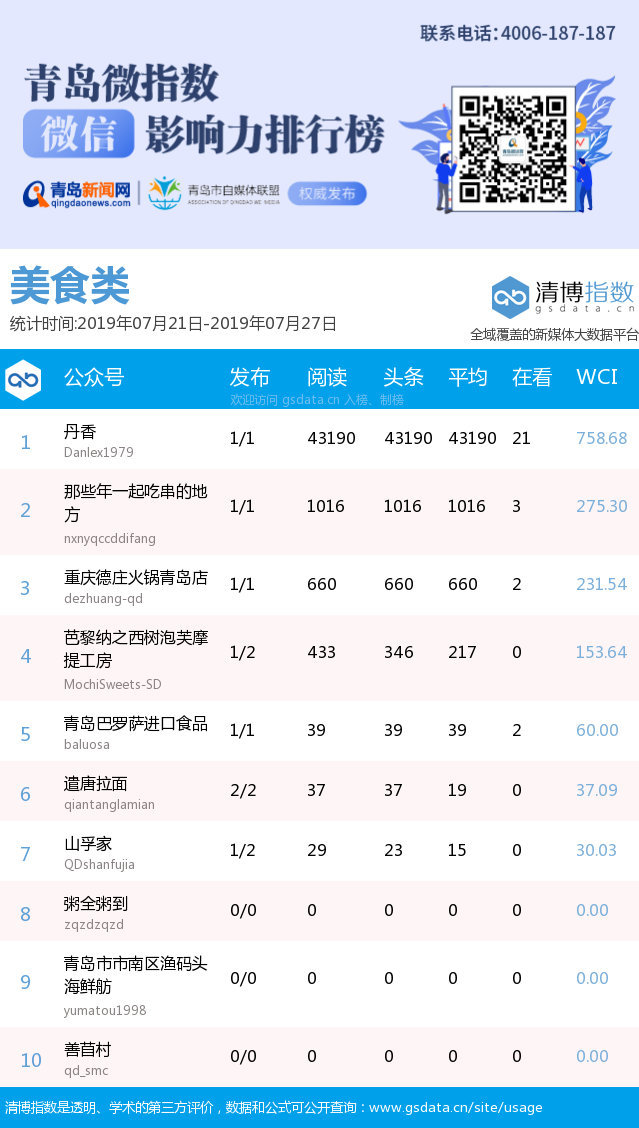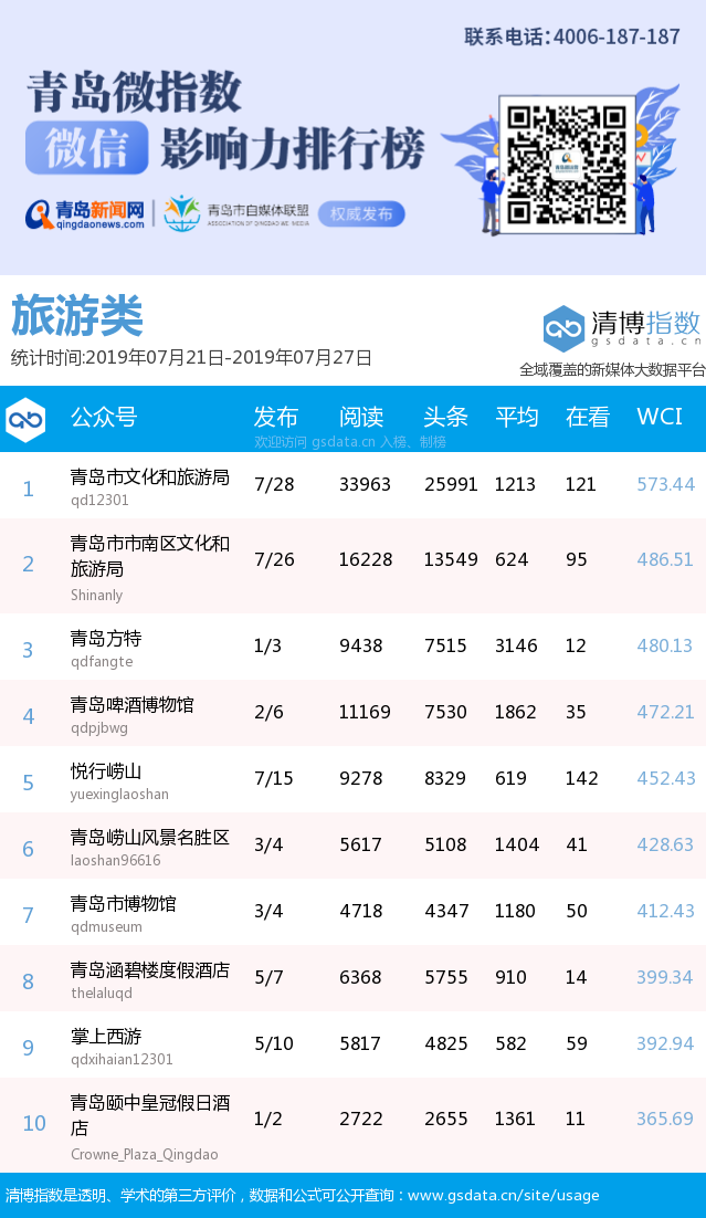 3、本次榜單收錄了青島14個(gè)行業(yè)微信公眾號(hào),如您的賬號(hào)暫未收錄,可聯(lián)系4006-187-187。