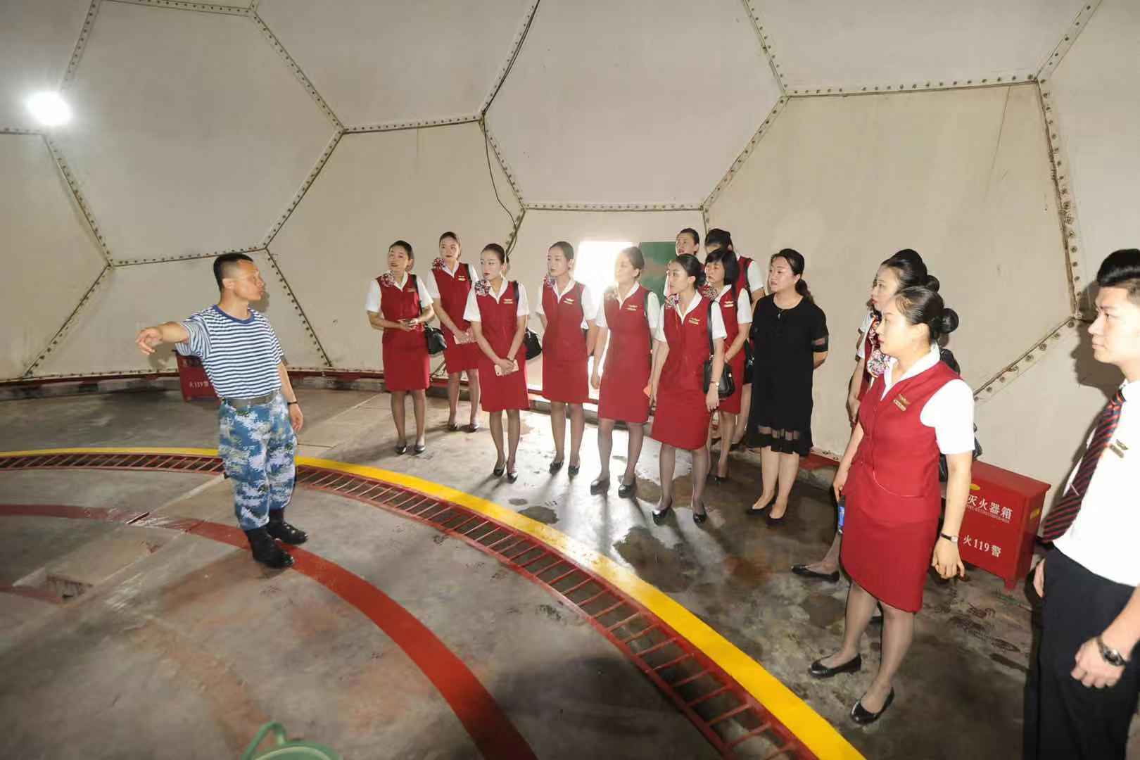 上午10時(shí)許,36名身著整齊制服的山航魯雁乘務(wù)員來到92664部隊(duì)營(yíng)區(qū)。大家首先被干凈整潔的營(yíng)區(qū)所震撼,人民子弟兵的精神面貌也讓乘務(wù)員們印象深刻。隨后,部隊(duì)官兵帶領(lǐng)大家參觀了營(yíng)區(qū)和部分設(shè)施,在官兵的講解下,大家了解到人民子弟兵的辛苦,更加深了對(duì)解放軍敬畏之情?!澳挠惺裁礆q月靜好,不過是有人替你負(fù)重前行?!背藙?wù)員不由得感慨。