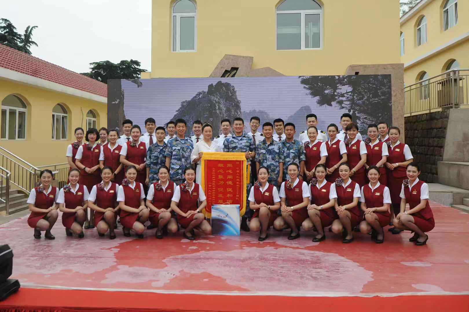 7月31日上午,在八一建軍節(jié)來臨之際,山東航空公司客艙部副總經(jīng)理華榜榜帶領(lǐng)魯雁乘務(wù)員代表來到海軍92664部隊(duì),慰問官兵參觀軍營(yíng)。