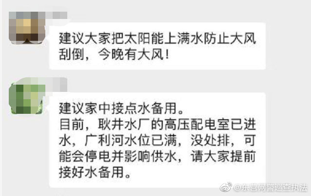 近日,受臺(tái)風(fēng)“奇馬利”來(lái)襲影響,部分微信群傳播以下信息:目前,耿井水廠的高壓配電室已進(jìn)水,廣利河水位已滿(mǎn),沒(méi)處排,可能會(huì)停電并影響供水,請(qǐng)大家提前接好水備用。經(jīng)東營(yíng)市公安局東營(yíng)分局核實(shí),耿井水廠并未停電及影響供水,本條信息是謠言,請(qǐng)廣大群眾勿信謠、勿傳謠。