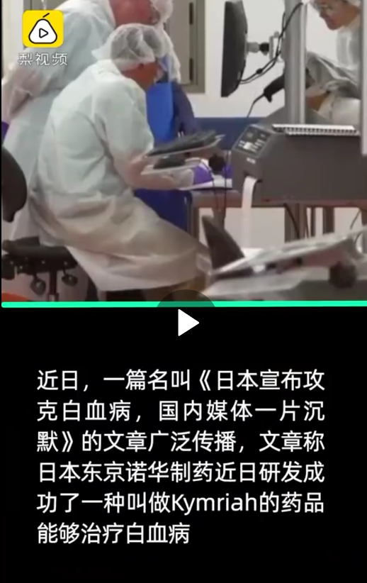 【日本攻克白血病是假新聞!真相:政府將一項(xiàng)昂貴療法納入醫(yī)保】近日,一篇關(guān)于“日本攻克白血病”的文章廣泛傳播,文章稱日本東京諾華制藥近日研發(fā)成功了一種叫做Kymriah的藥品能夠治療白血病。其實(shí)Kymriah是一款CAR-T療法的商品名。該療法早于2017年就由賓夕法尼亞大學(xué)研究團(tuán)隊(duì)和瑞士諾華制藥研發(fā)并發(fā)售?;虿僮餍枰獙⒓?xì)胞運(yùn)送到美國(guó)進(jìn)行。收費(fèi)高達(dá)3349萬日元(約合227萬元)。由于價(jià)格對(duì)一般人來說難以承受,日本今年5月宣布正式將Kymriah納入醫(yī)保,患者需承擔(dān)費(fèi)用降至41萬日元。