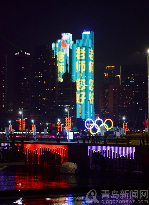 “老師,您好”!青島前海一線為教師亮燈
