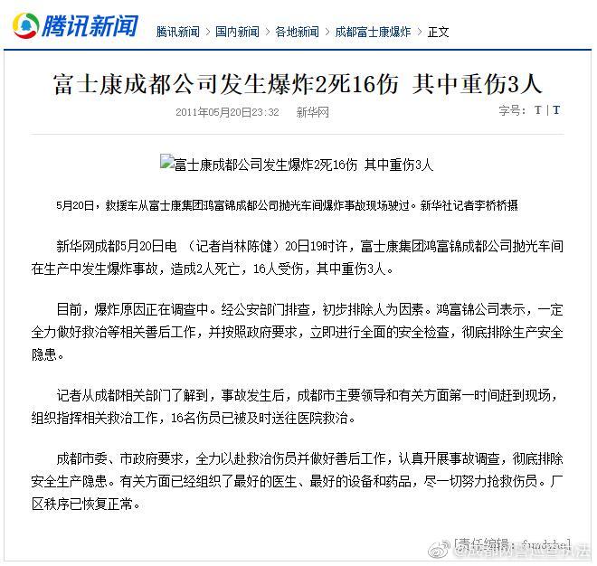 網(wǎng)警辟謠:“成都富士康爆炸死亡300人”系謠言