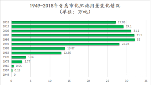 化肥是重要的農(nóng)業(yè)生產(chǎn)資料,是糧食的“糧食”,但化肥過量、盲目施用等問題,也帶來了成本的增加和環(huán)境的污染。青島市委市政府牢固樹立“增產(chǎn)施肥、經(jīng)濟(jì)施肥、環(huán)保施肥”理念,依靠科技進(jìn)步,提高肥料利用率,促進(jìn)農(nóng)業(yè)可持續(xù)發(fā)展。青島的化肥施用量呈現(xiàn)先快速增長、達(dá)到峰值后保持穩(wěn)中有降、持續(xù)下降的趨勢(shì),逐步走上了減肥增效、高產(chǎn)高效的可持續(xù)發(fā)展之路。1978全青島市化肥施用量僅有3.64萬噸,至1995年全市化肥施用量猛增到31.45萬噸,隨后長時(shí)間保持在30萬噸以上。自2008年以來,由于國家對(duì)生態(tài)環(huán)境保護(hù)的重視,全市化肥施用量逐年減少。