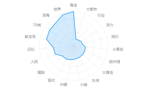 從熱門關(guān)鍵詞中我們可以看到,在本次“70年70城記住青島”報道中,“青島”一詞出現(xiàn)頻率最高,達(dá)2935次,其次是“世界”,出現(xiàn)次數(shù)達(dá)2834次。“深?!薄ⅰ?0城”、“蛟龍?zhí)枴钡纫彩菬衢T關(guān)注點。