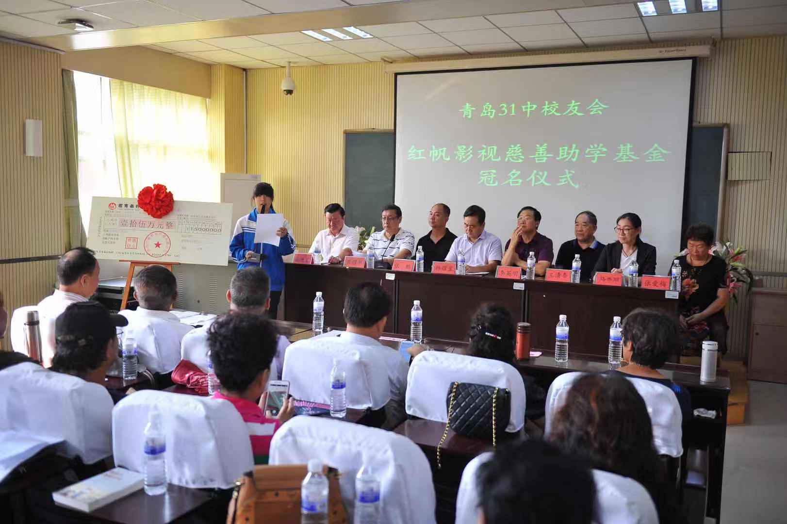 冠名儀式上,由青島慈善總會財經(jīng)分會副會長兼秘書長楊進(jìn)軍主持。青島31中校友會副秘書長張愛梅簡要介紹原青島31中校友基金會概況。青島市慈善總會財經(jīng)慈善分會副會長李英明宣讀青島31中校友會紅帆影視慈善助學(xué)基金理事會成員名單(會長、副會長、秘書長等)。青島31中校友會紅帆影視慈善助學(xué)基金理事會理事長黃耀華宣讀《青島31中校友會紅帆影視慈善助學(xué)基金章程》。青島市文化藝術(shù)界慈善分會副秘書長、青島31中校友會紅帆影視慈善助學(xué)基金理事會名譽(yù)理事長王清泰,向青島市慈善總會、財經(jīng)慈善分會交接青島31中校友會紅帆影視慈善助學(xué)基金善款。市慈善總會募捐部部長張鵬向基金會頒發(fā)證書。青島31中校友會紅帆影視慈善助學(xué)基金理事會副理事長兼秘書長、青島紅帆影視有限公司總經(jīng)理蔣立勇講話。青島31中學(xué)受益學(xué)生代表和家長代表發(fā)言。