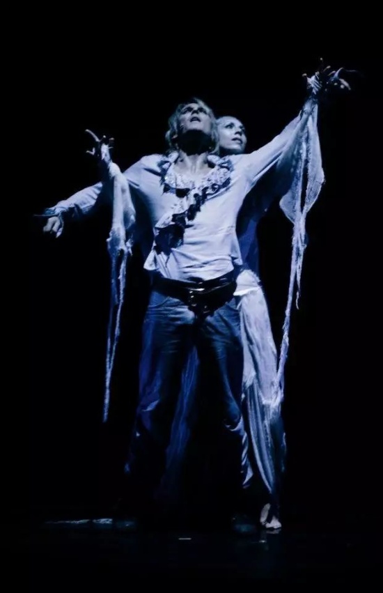 而音樂劇中的一大亮點就是“死神”的存在。從頭到尾一言不發(fā),用優(yōu)美的肢體語言暗示著劇中人物的命運。但誰都知道故事的結局,即便死神在羅密歐身邊反復出現(xiàn),觀眾也不會大喊:“夭壽??!劇透?。∥乙似?!”