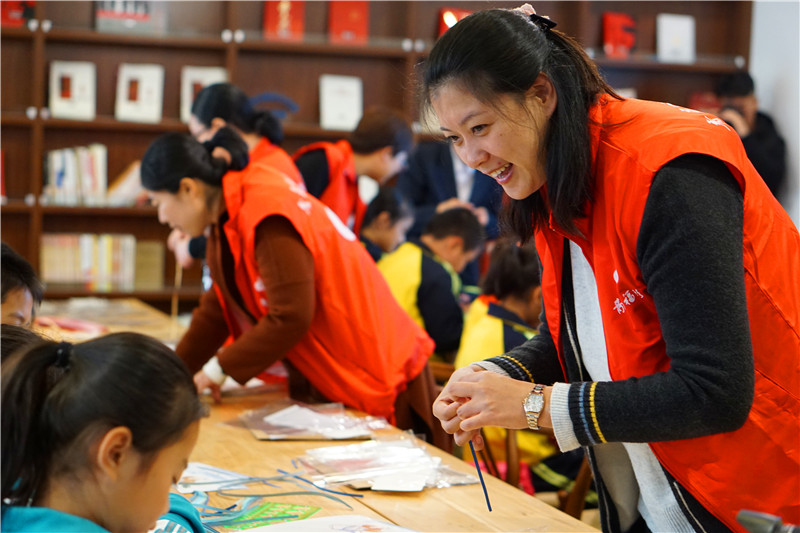 志愿者幫孩子們折紙,一起體驗創(chuàng)作的樂趣