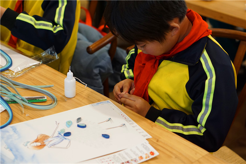 青島酒店管理職業(yè)技術(shù)學院的老師先是為孩子們講述了衍紙藝術(shù)的起源發(fā)展等知識