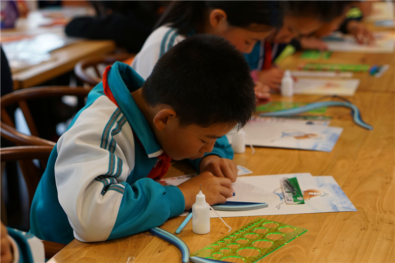蘭底小學少先隊大隊輔導員劉瑞花表示,今天來的孩子都是品學兼優(yōu)但是家庭困難的孩子,有的是跟爺爺奶奶一起生活,有的是單親家庭,還有的是因為家人生病,家庭負擔比較重。他們的家長平時很少帶孩子們到青島市區(qū)游玩,今天到青島市區(qū)來,開拓了孩子們的視野,孩子們很開心。今天的衍紙制作,不僅要卷紙還要粘貼,還要選擇顏色,大小搭配等,既培養(yǎng)了孩子的動手能力,也培養(yǎng)了孩子們的審美,感謝主辦方給孩子們這樣的機會。