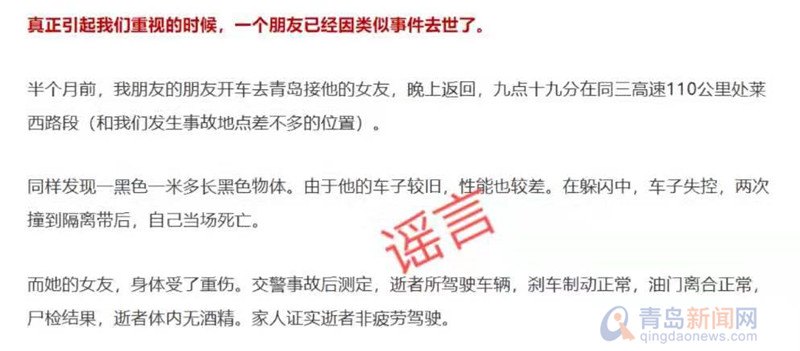 同三高速萊西段夜間有人設路障搶劫?交警:系謠言