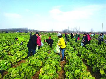 市民正在采收膠州大白菜。