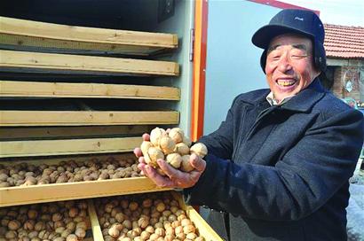 為了使核桃的銷路更廣,他通過電商在網上銷售,甘肅的一家公司需要這種大個核桃鮮果,從中提取腦磷脂,通過網上看到銷售信息后,專門從甘肅趕過來,一下子訂購了30余噸鮮果。其他多家大型超市也通過網站獲得他的信息,通過實地考察,紛紛簽訂合作協(xié)議。