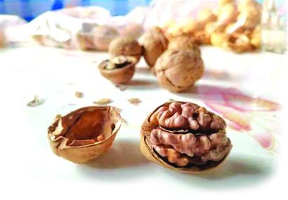 高清貴拿出核桃新品種,熱情邀請記者品嘗。記者隨手拿起一枚核桃,放在手里輕輕一捏,飽滿的核桃仁便暴露出來,而且核桃殼并沒有完全破碎。記者注意到,這幾個核桃新品種個頭比普通核桃要大,殼的厚度僅僅與普通名片差不多。高清貴說,他培育的三個品種,分別起名為“清貴1號”、“清貴2號”、“清貴3號”。吃核桃除了養(yǎng)生之外,最主要就是吃這個香味,“清貴1號”吃起來比較方便,兩個核桃握在手里,稍稍用勁一捏,核桃皮就碎了。不像硬殼核桃一樣,還得找專門的工具,而且出仁率高,味道純正,口齒留香,令人回味悠長,缺點就是產量上不去。 “清貴3號”抗病性較低,管理難度大。