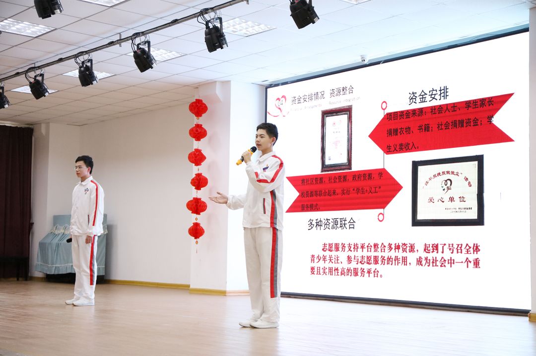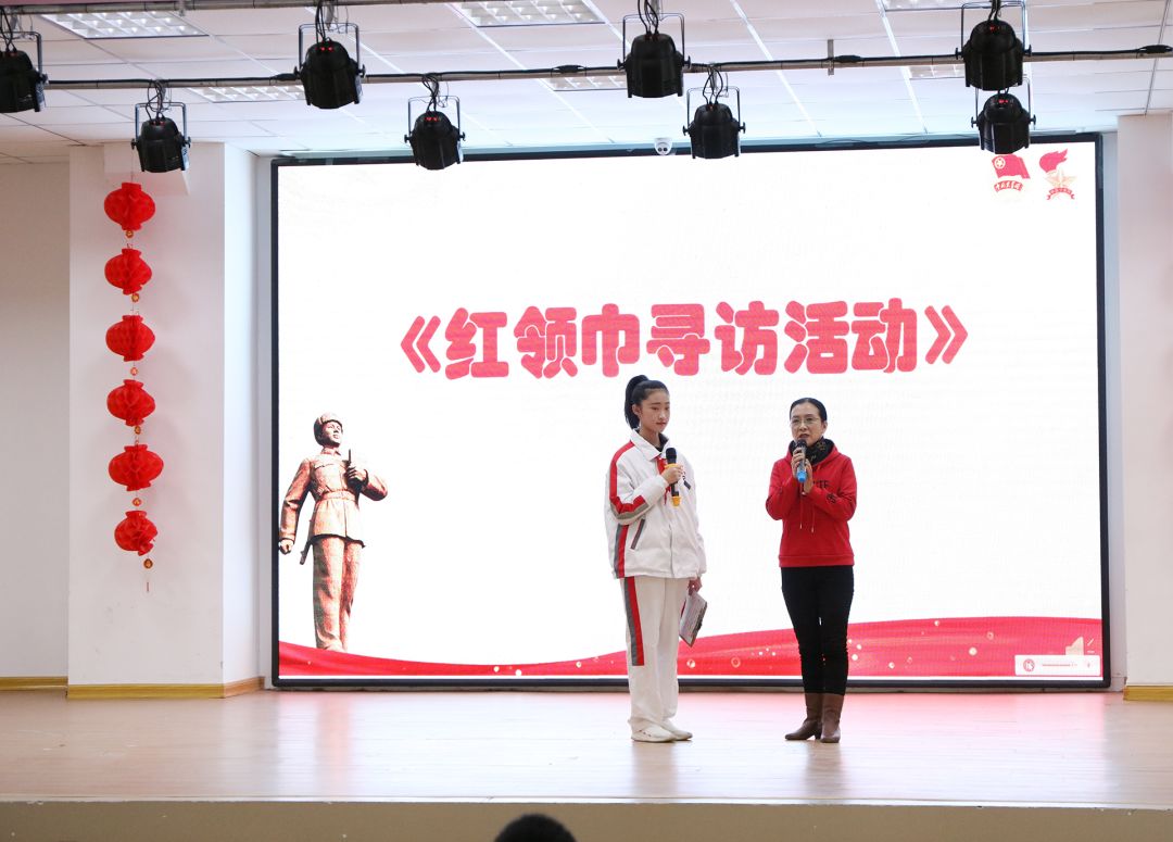 超銀中學(xué)(鎮(zhèn)江路校區(qū))的五四先鋒少年們多年來一直堅持常態(tài)化開展社會志愿服務(wù)活動,用實際行動踐行超銀的奉獻(xiàn)精神。他們先后榮獲“學(xué)雷鋒優(yōu)秀團(tuán)支部”“五四紅旗團(tuán)支部”等榮譽(yù)稱號。在第二板塊的《紅領(lǐng)巾尋訪活動》活動中,現(xiàn)場播放了現(xiàn)就讀于中國傳媒大學(xué)的超銀畢業(yè)生錄制的視頻,他回憶了在超銀讀書的日子里參與的學(xué)習(xí)雷鋒活動帶給他的一生的影響。來自于海倫路街道哈爾濱路社區(qū)的隋書記與大家分享了近幾年來超銀的紅領(lǐng)巾們對社區(qū)的幫助和關(guān)懷……